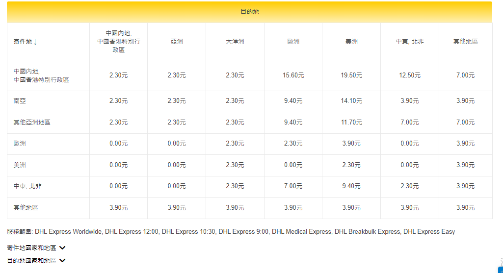 附加費的金額及適用日期可能會在需求期間調整。需求期由DHL釐定。如有更改將提前通知。